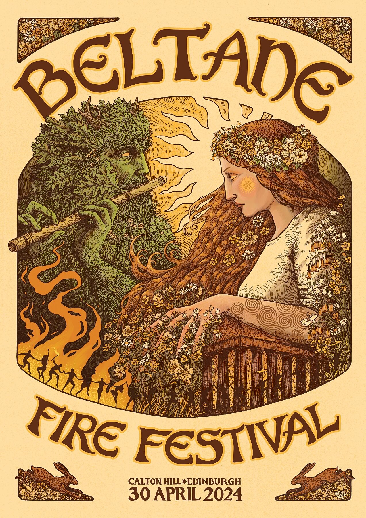 Fine art Giclée print of Beltane Fire Festival Poster, originally for the Beltane Fire Society, printed using archival quality inks on Hahnemühle German Etching a 310gsm mould-made paper.