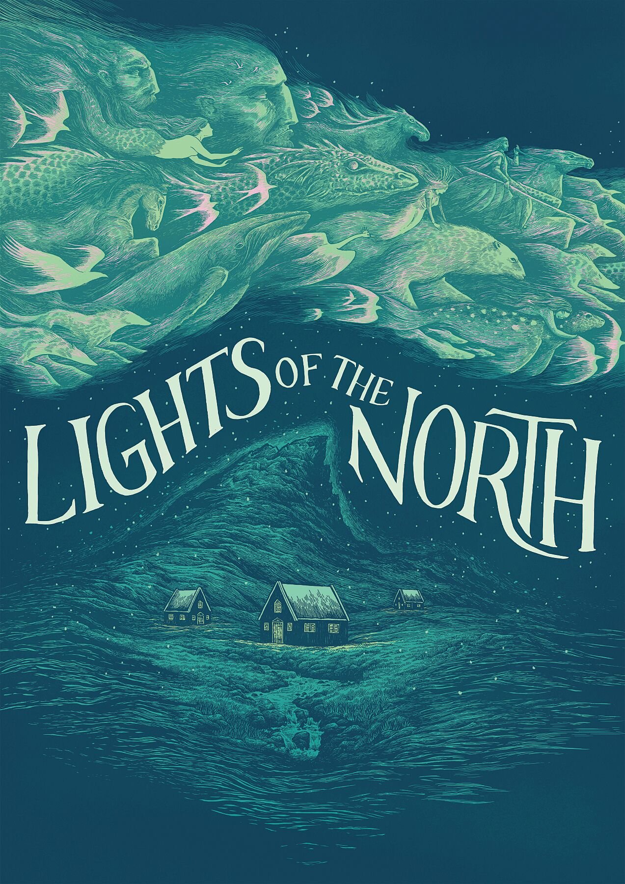 Fine art Giclée print of Lights of the North, Scottish International Storytelling Festival 2025 Poster, originally for the Scottish Storytelling Centre, printed using archival quality inks on Hahnemühle German Etching a 310gsm mould-made paper.
