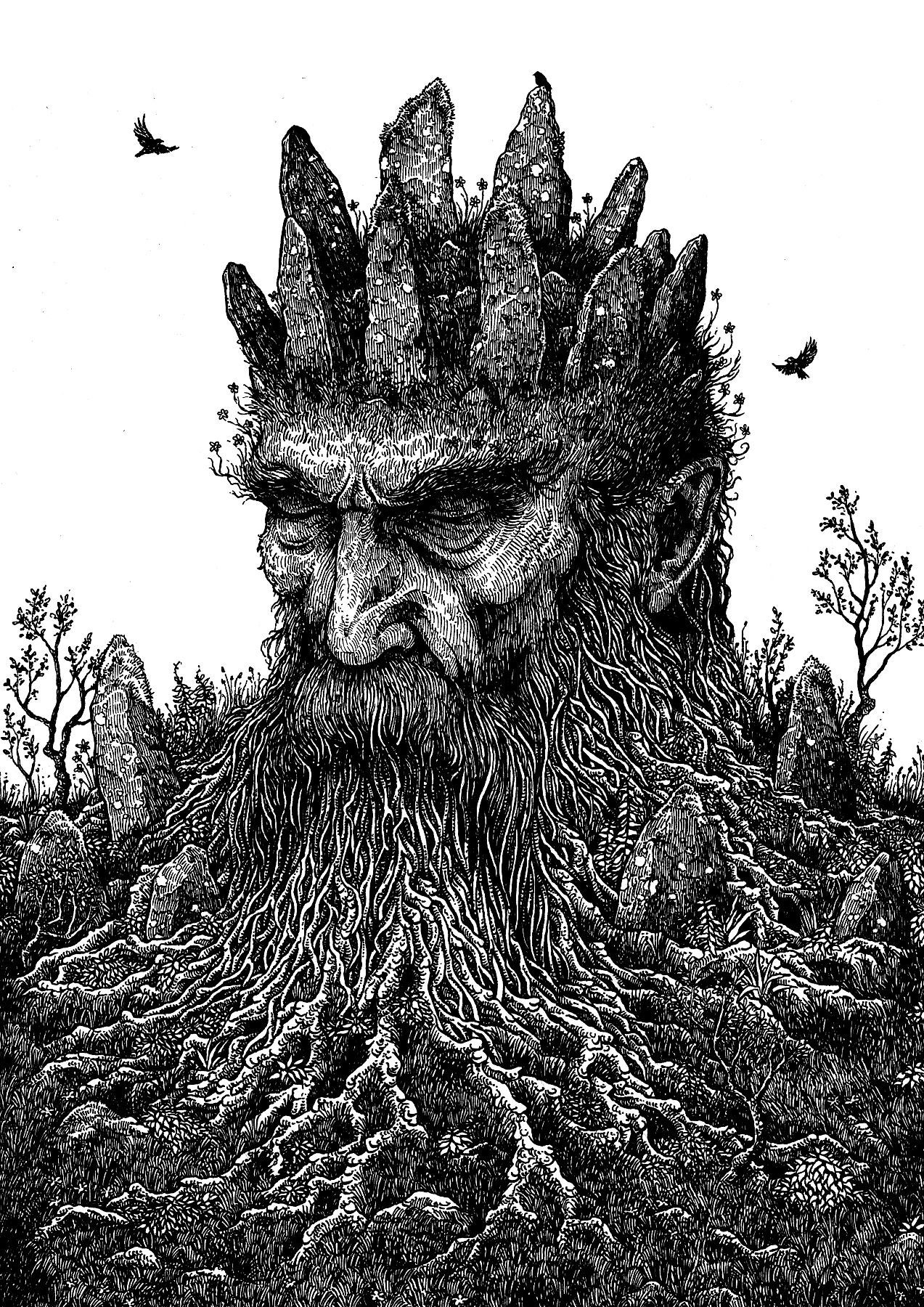 Fine art Giclée print of 'Old Man of the Stones' ink drawing, printed using archival quality inks on Hahnemühle German Etching a 310gsm mould-made paper.