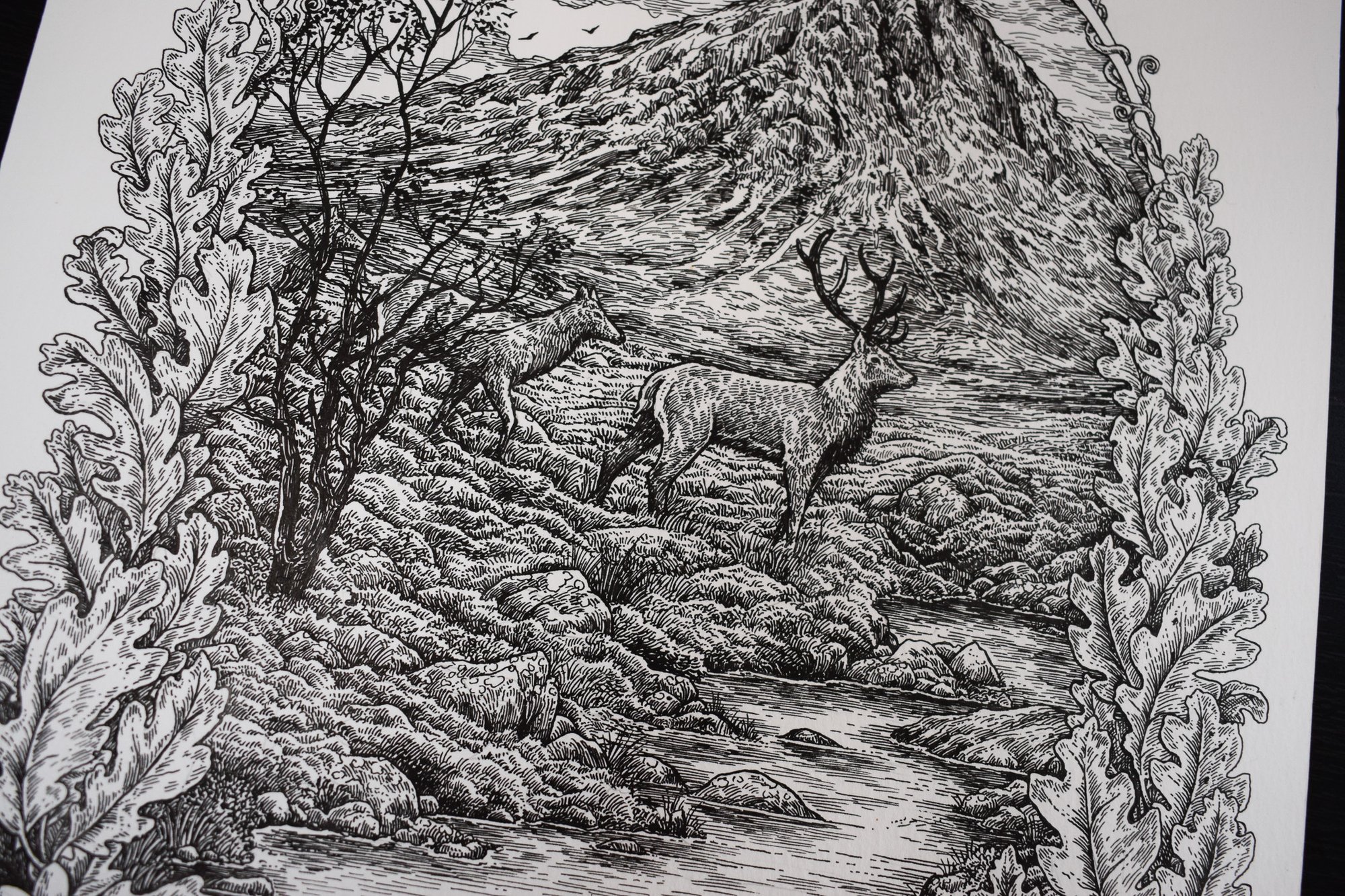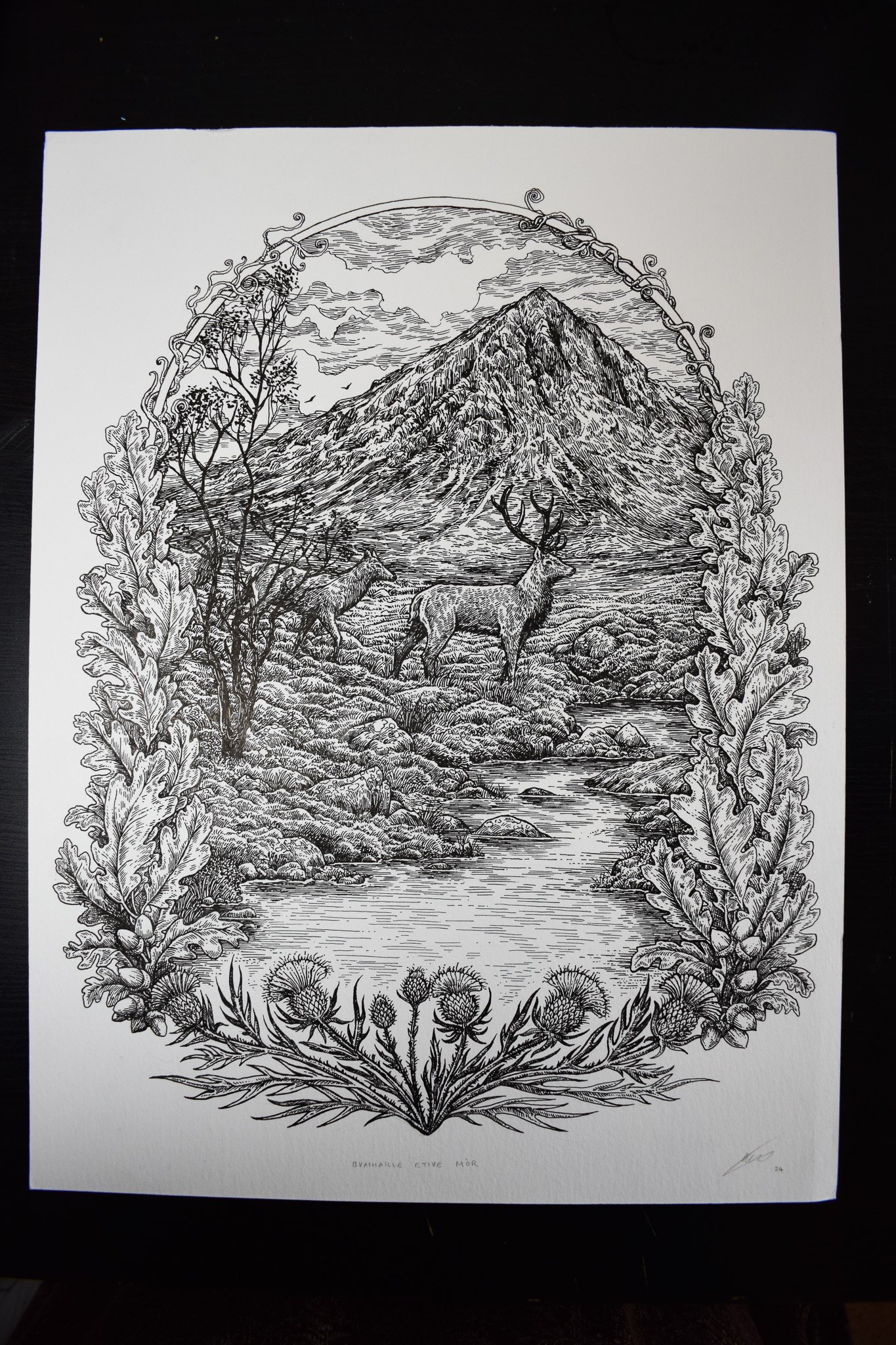 ORIGINAL Buachaille Etive Mòr ink drawing